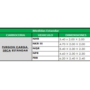 Accesorios: Aire Acondicionado.Furgón en aluminio.Kit de carretera.Película seguridad vidrios.Seguros antirrobo accesorios.Tapetes.Uso productivo Carga Seca – Kit telemetría Arriendo.Cinta reflectiva.Porta extintor.Extintor 20 lbs.Alarma de Reversa.